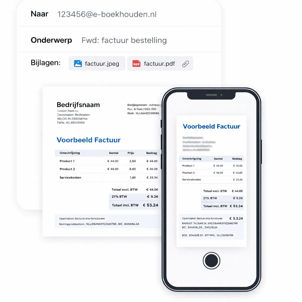 Je levert je facturen en bonnetjes eenvoudig aan via e-mail, onze mobiele app (iOS en Android) of de beveiligde online omgeving. Met de geïntegreerde facturatietool stel je snel en moeiteloos professionele verkoopfacturen op in je eigen huisstijl.
